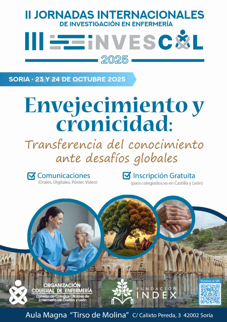 Desde el Consejo de Colegios Oficiales de Enfermería de Castilla y León, en convenio con la Fundación Index, se está organizado el III INVESCOL con las Jornadas Internacionales de Investigación en Enfermería. Envejecimiento y Cronicidad: “Transferencia del conocimiento ante desafíos globales”, que se celebrarán en Soria durante los días 23 y 24 de octubre de 2025, donde los profesionales de enfermería tendremos la oportunidad de exponer que la investigación es un proceso que permite mejorar el conocimiento enfermero y en consecuencia la práctica profesional.